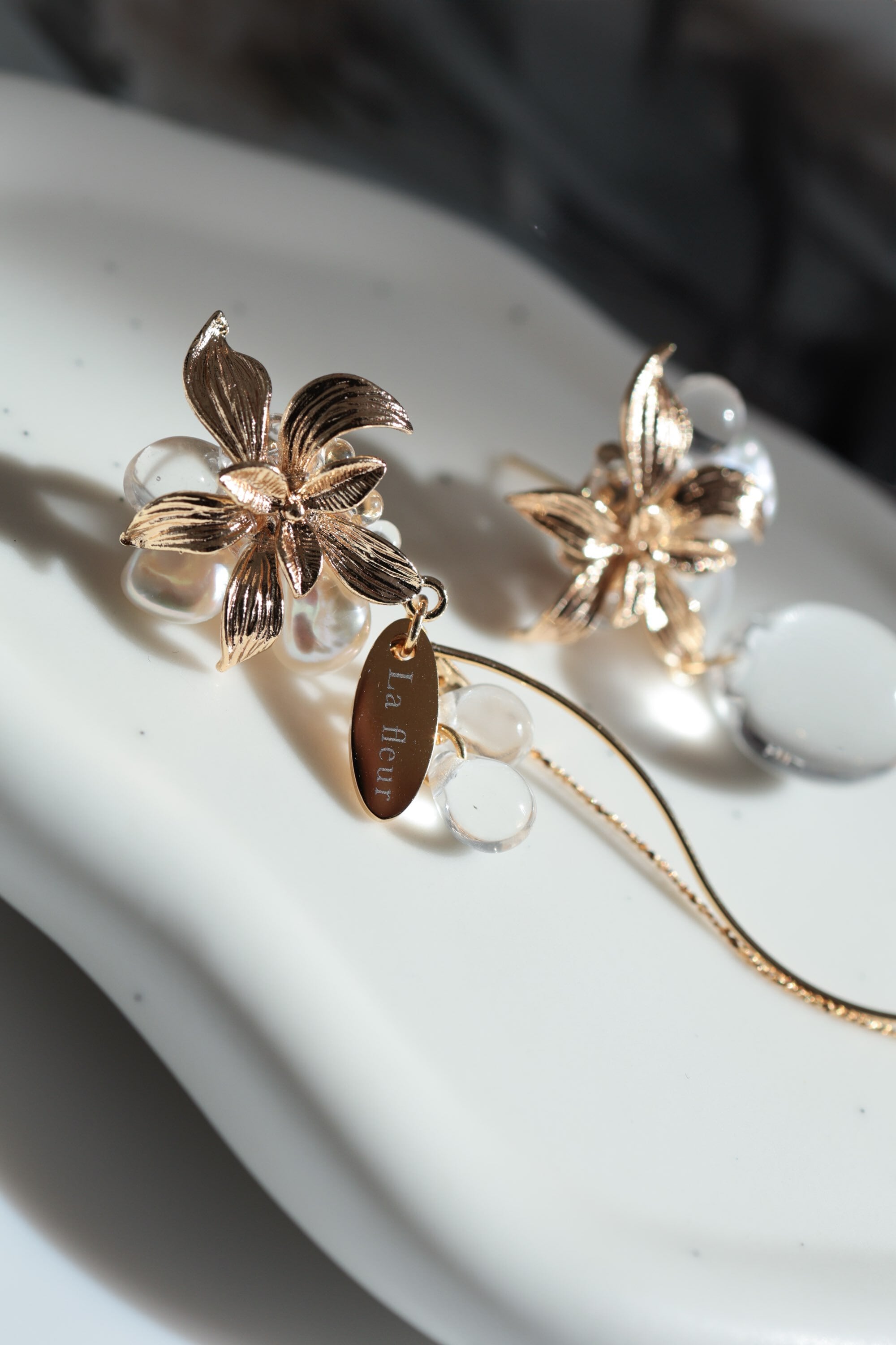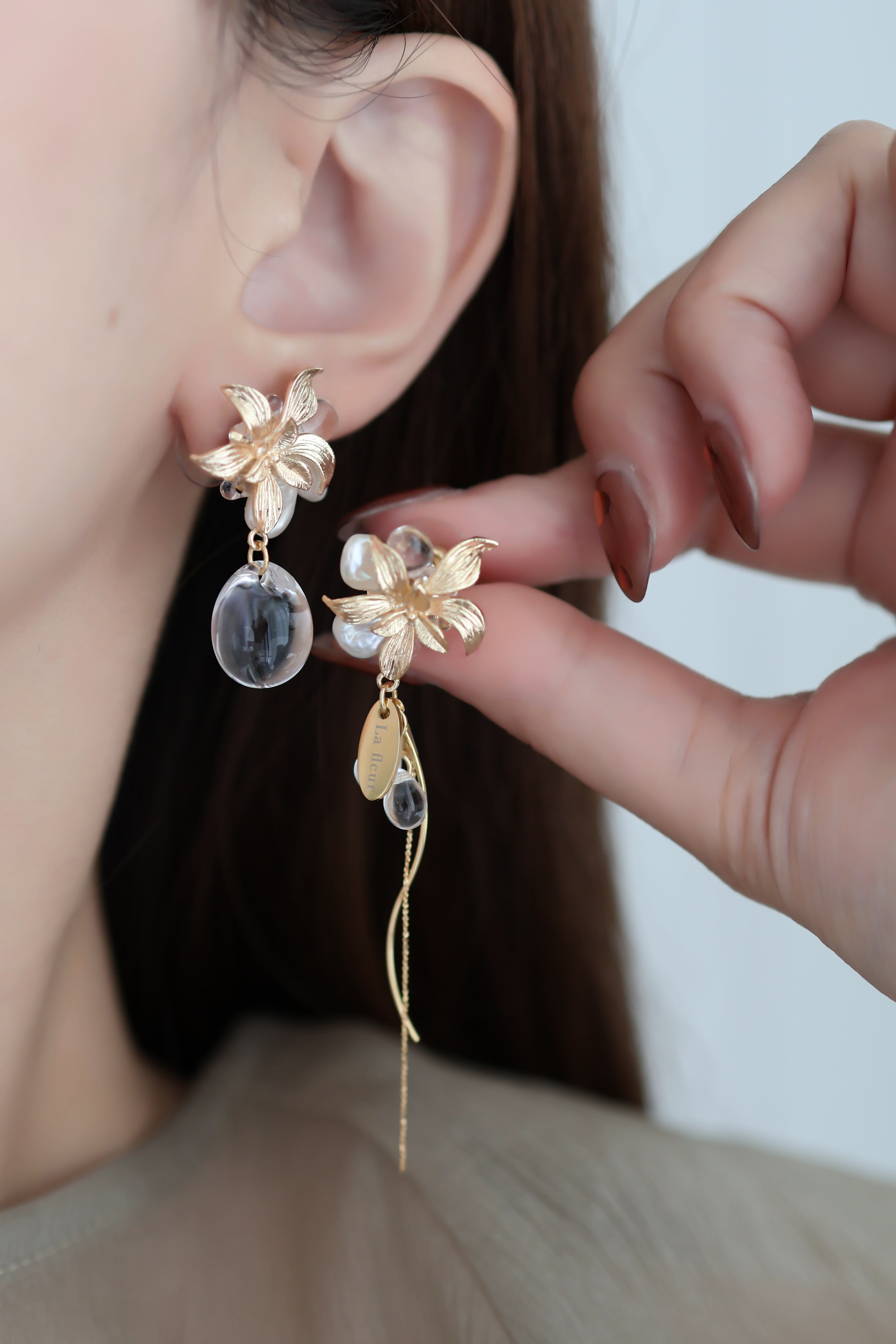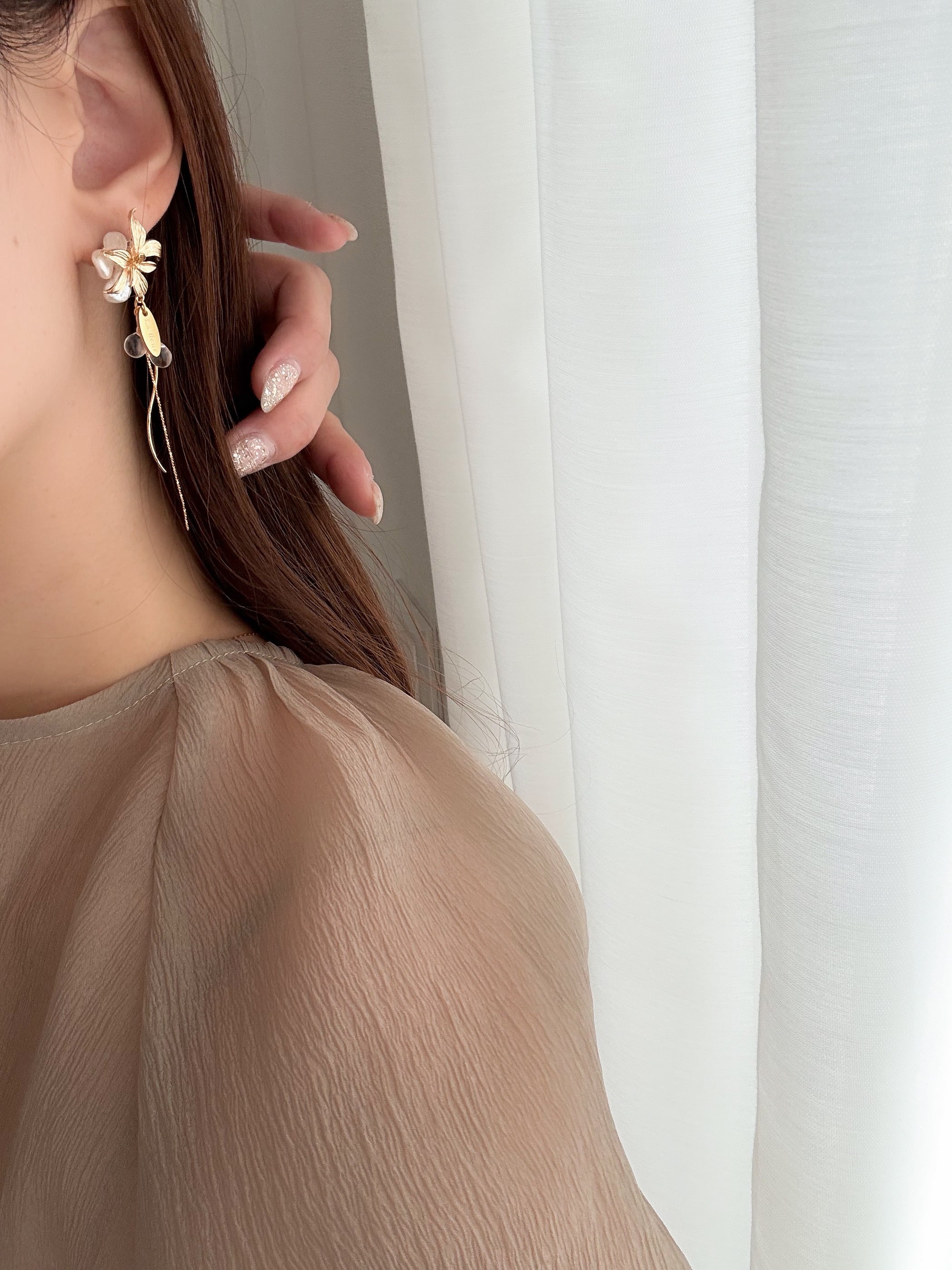 左右で表情の違うアシンメトリーデザインが、お顔まわりをぐっと華やかに魅せてくれます