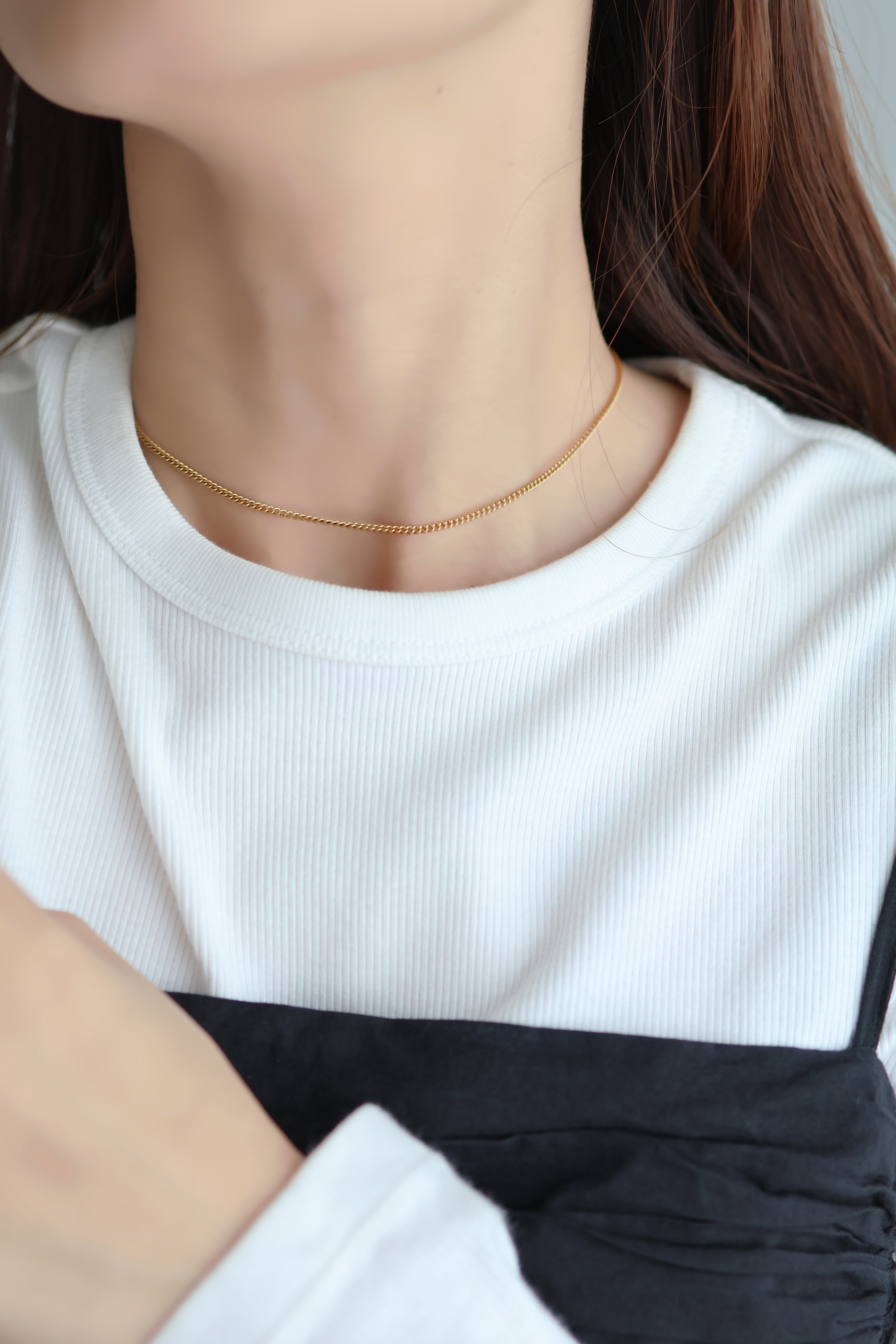 ☑︎服の素材に埋もれにくい、2㎜幅の喜平チェーン