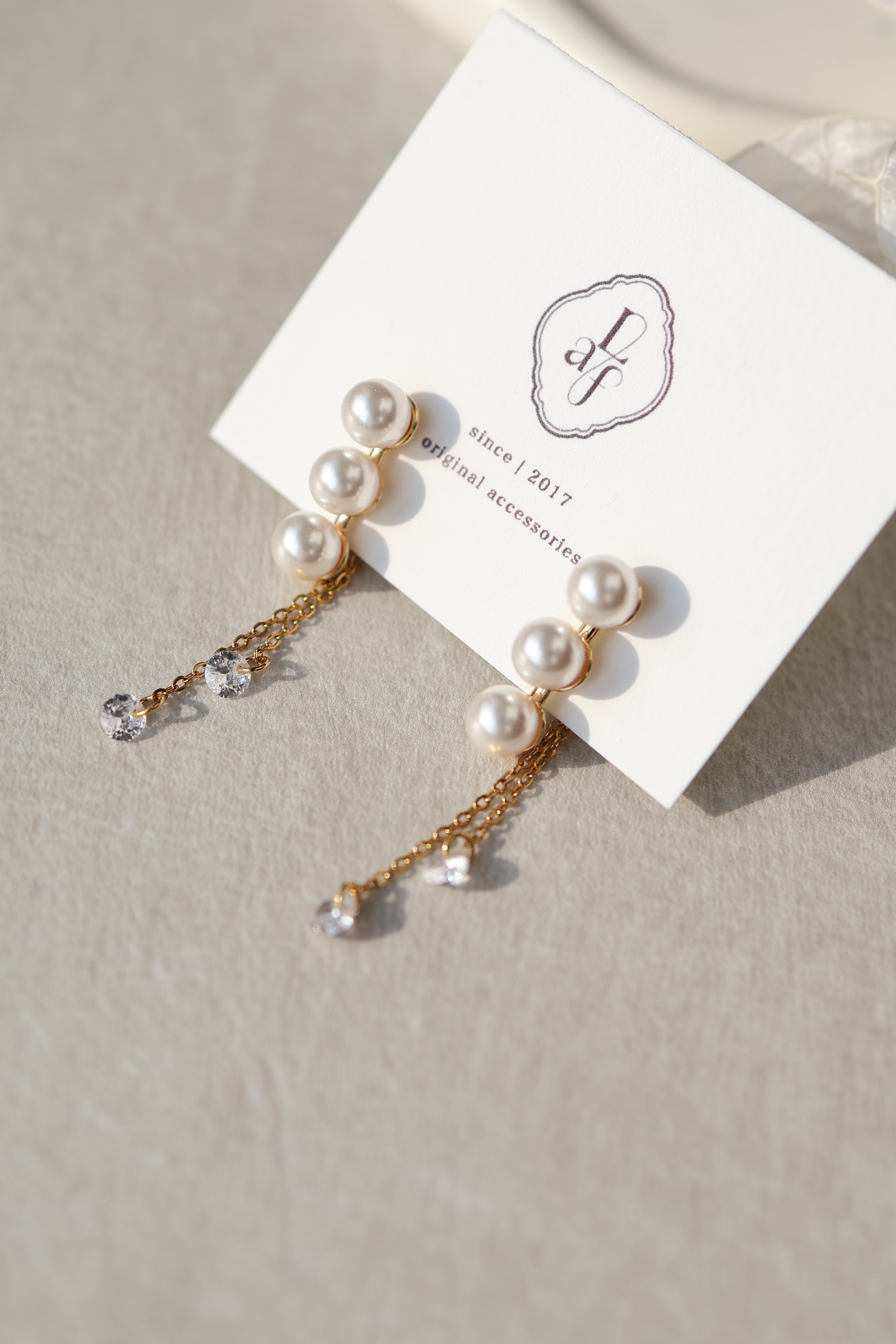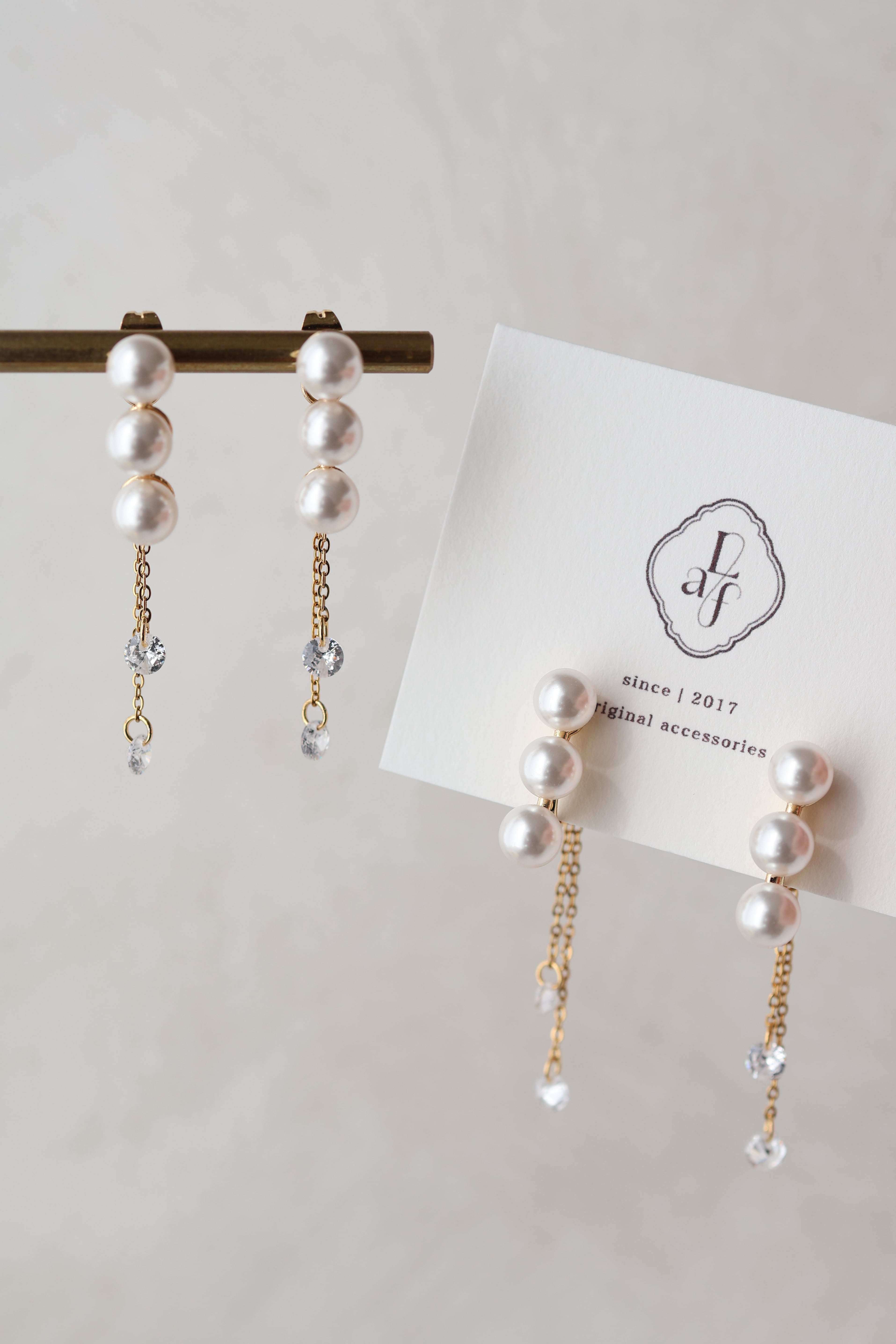艶やかなパールを縦に連ね